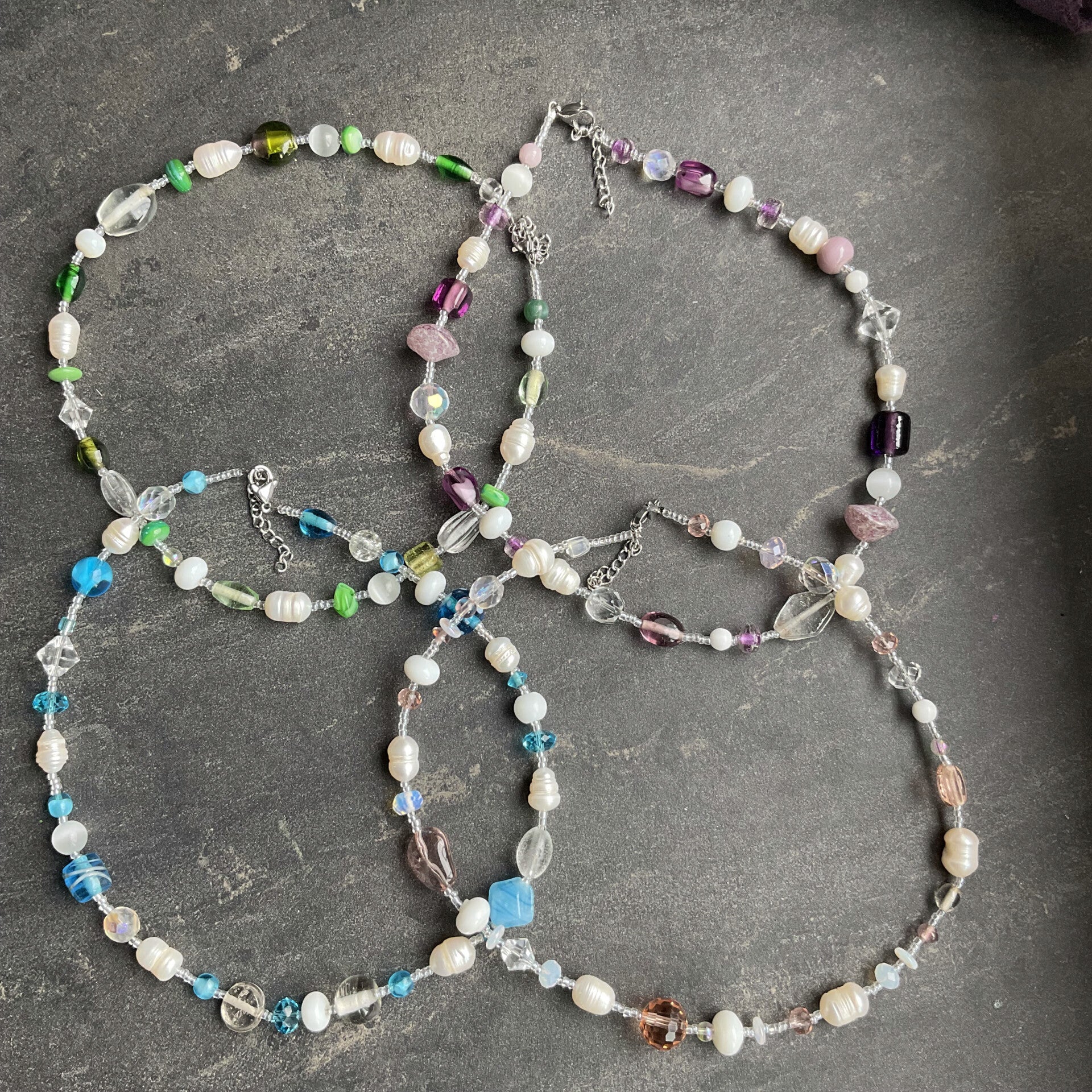 They are made with stainless steel closure. The beads used are freshwater pearls, glass beads and seedbeads.