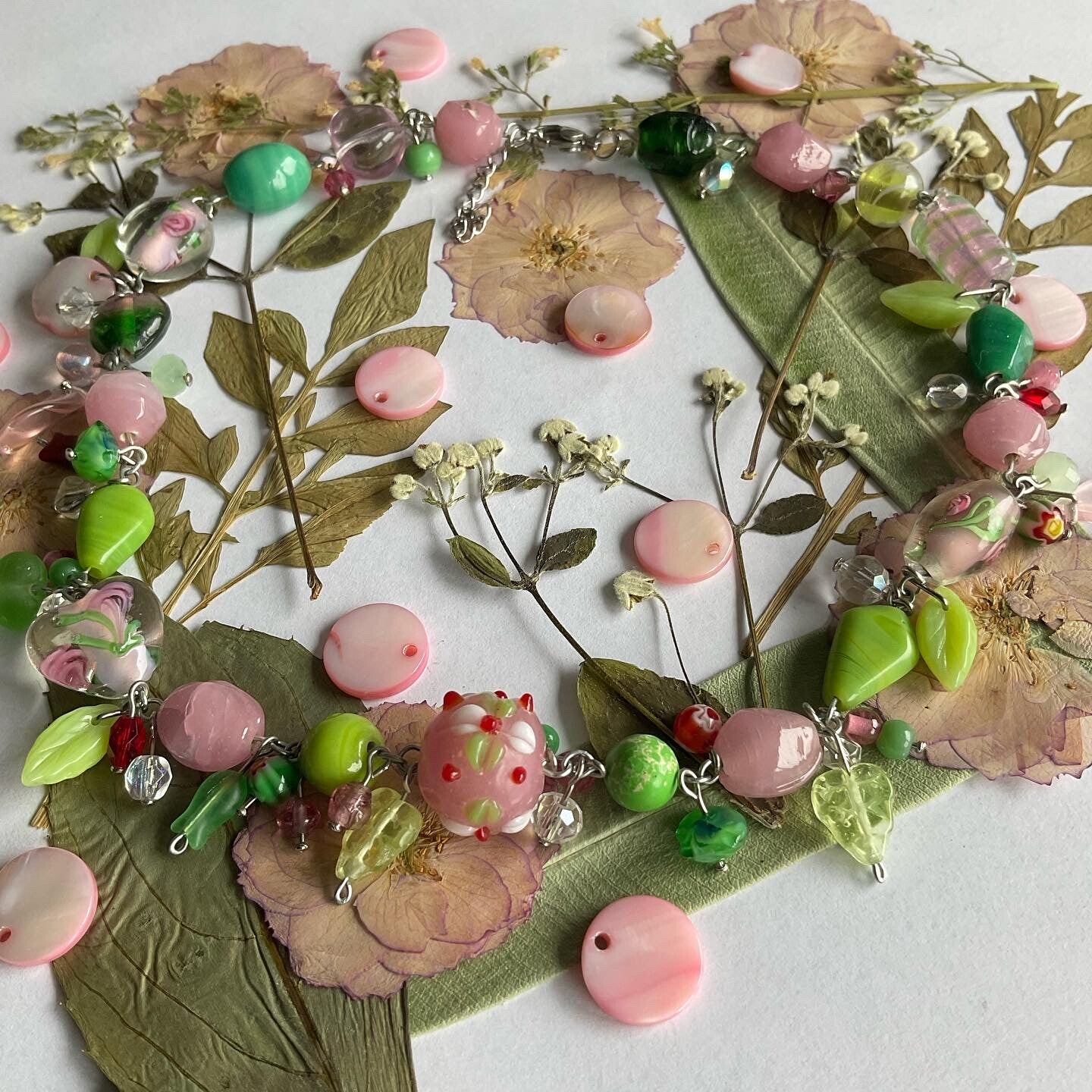A more busy style than normal, but this necklace is really blooming! I loved making this but it also took some more time than normal. From planning the beads till the assembling of the necklace.