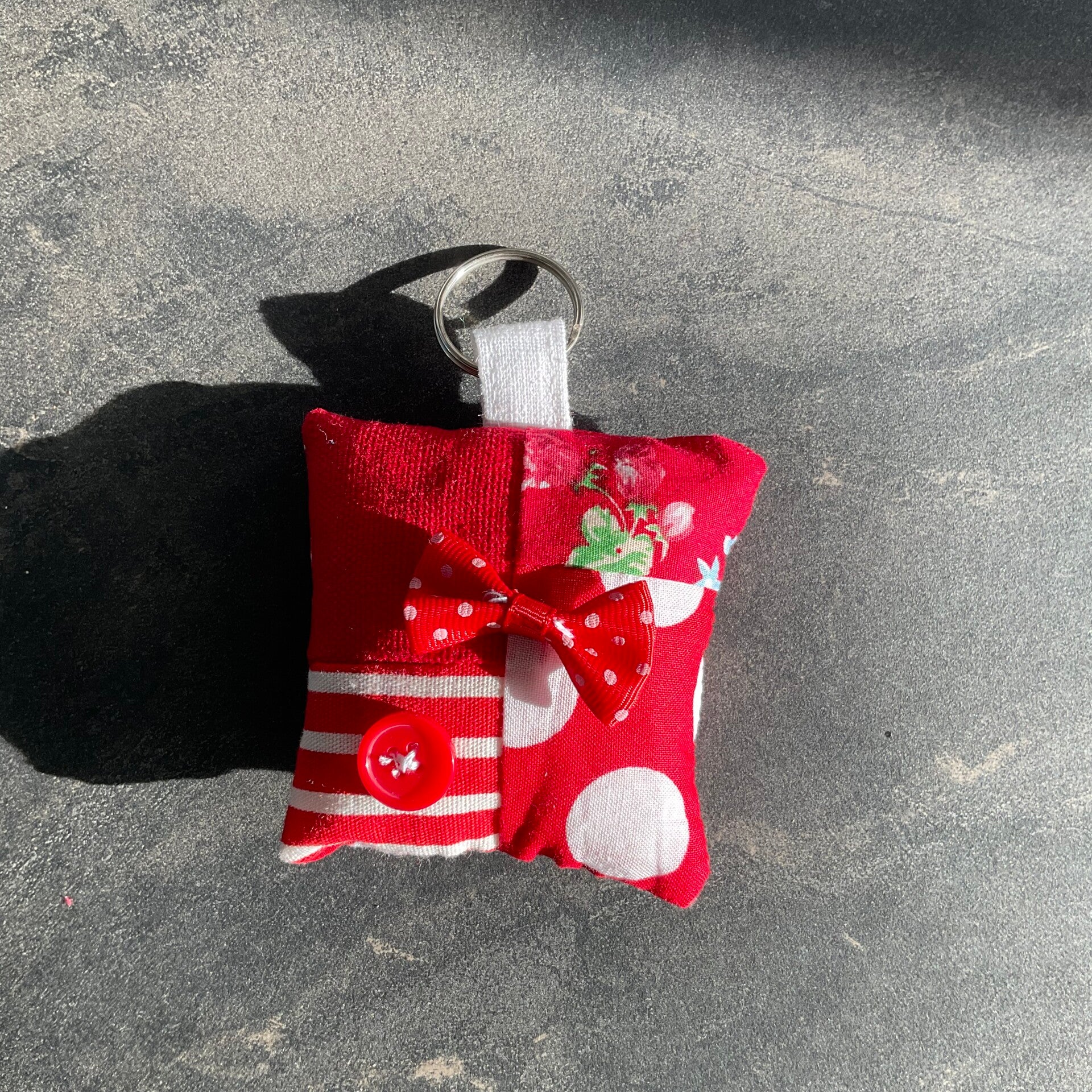 The red buddy in the square keychain collection! Can be to style your bag or other things!