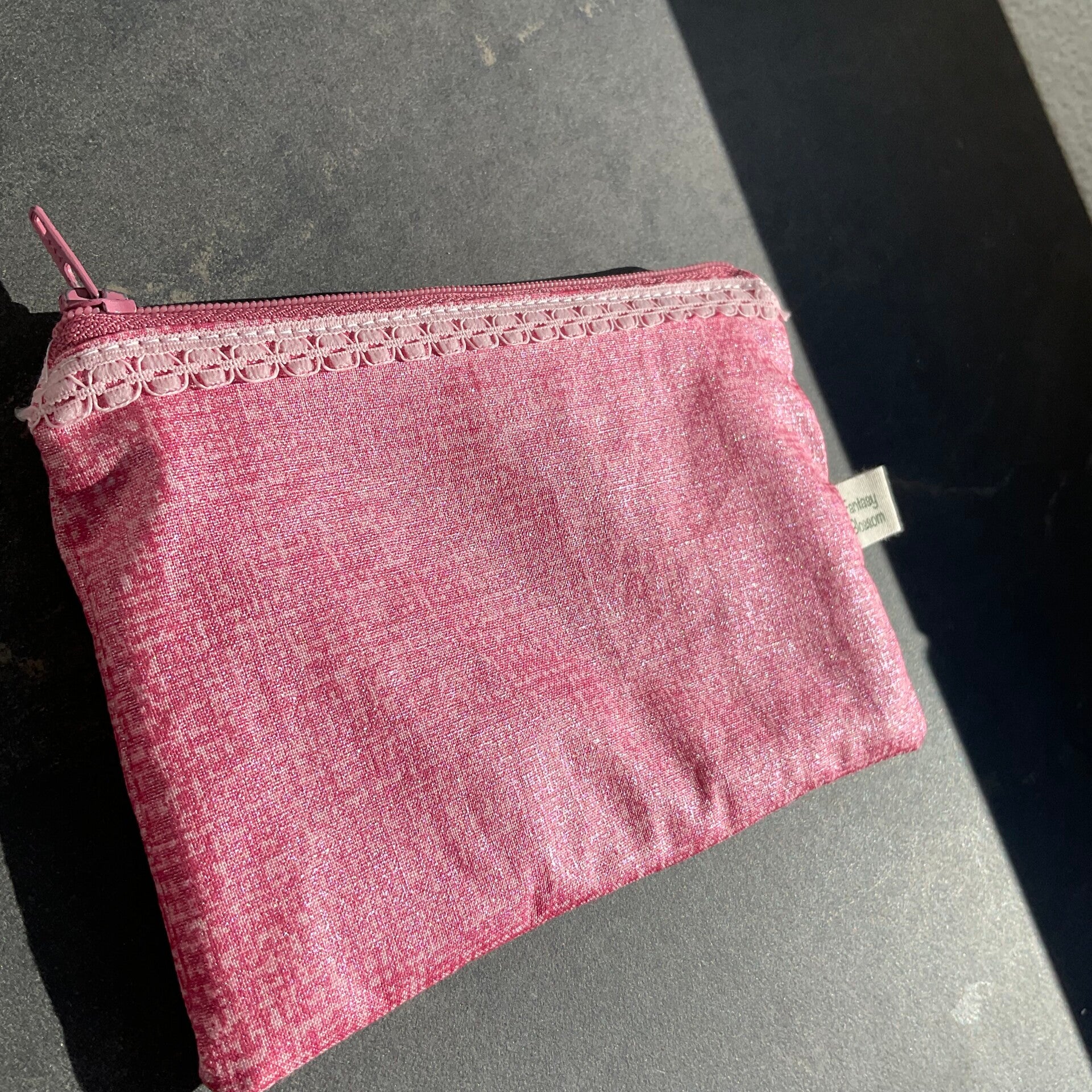 A very pink pouch! The fabric on the outside is slightly shimmery for even better vibes!